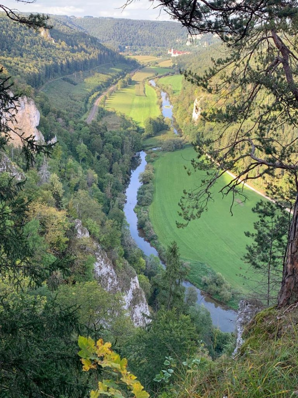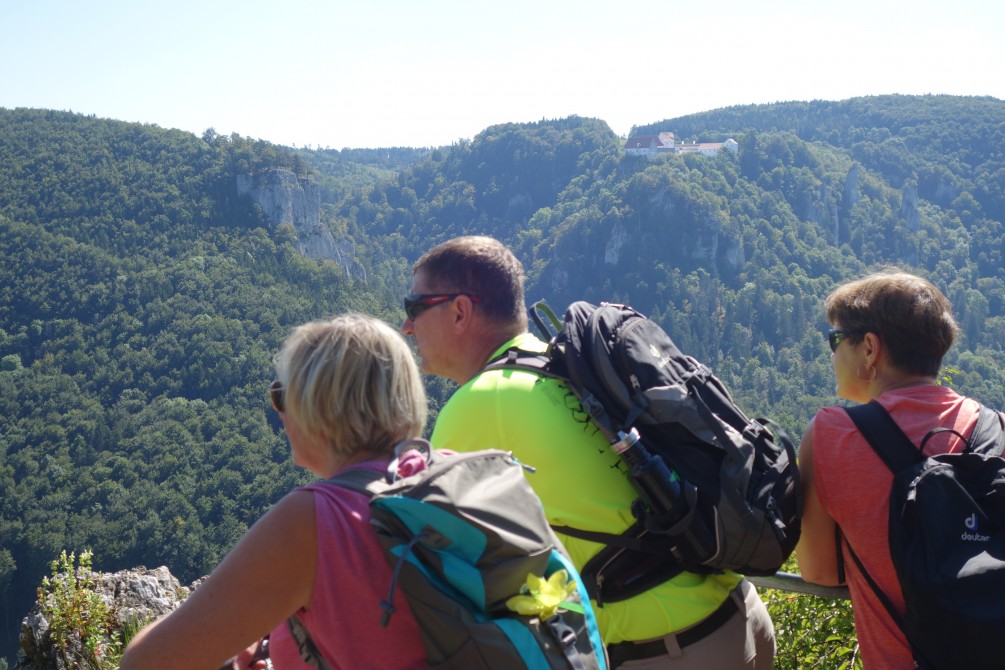 mit einem Ausblick an unser Ziel Wildenstein. Aber zuvor wie von uns bedacht gab es einen kleinen Abstieg zum Eichfelsen mit einem atemberaubenden Panoramablick ins Donautal.