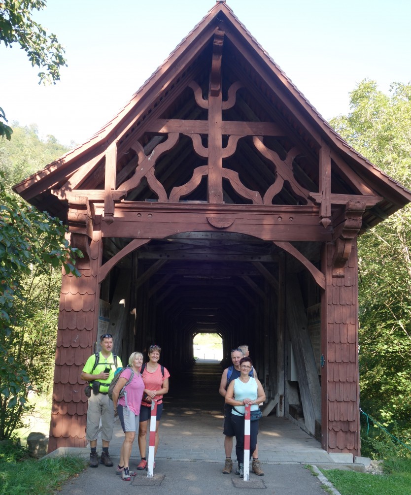 Am zweiten Wandertag parkten wir unseren PKW in Beuron. Vom Benediktiner Kloster aus, wanderten wir in Richtung Burg Wildenstein. (Auch Eichfelsen-Tour genannt). Diese Wanderung hat nur einen Höhnunterschied von 200m. Bei unserer ersten Überquerung der Donau benutzen wir eine alte Holzbrücke. Diese wurde in den früheren Jahren von Pferd und Viehwägen, unter Tarifbedingungen, benutzt.