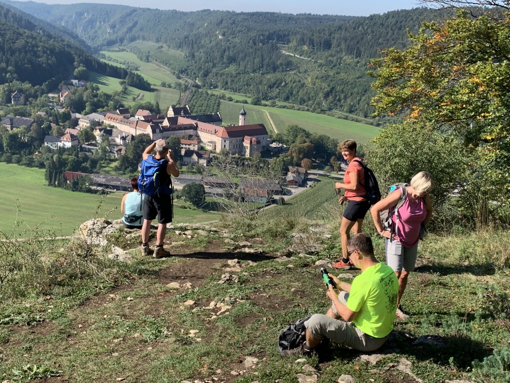 Am nächsten Morgen starteten wir, mit gutgepacktem Wanderrucksack von der Gaststätte aus, unsere Donaufelsentour. Die Wanderung durchs Donaufelsengebiet, auch “Schwäbischen Grand Canyon“ genannt, besteht aus Auf- und Abstieg von einem 600m Höhenunterschied. Sie dauerte ungefähr 5 Stunden. Sie ist die längste Rundwegtour von den Donauwelle Rundwegen.