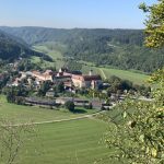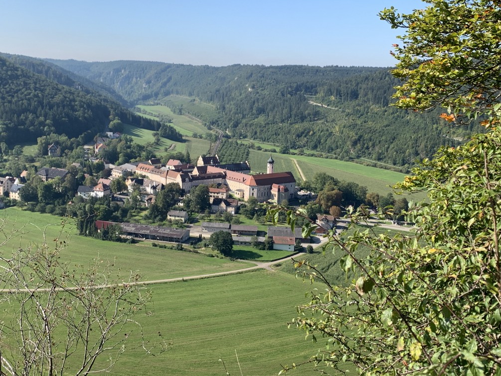 Leider erreichten wir den Ort Beuron zur späten Abendstunde. Wir konnten das Kloster leider innen nicht besichtigen. Die Brüder des Klosters hielten eine Andachtsmesse. Unser Besuch war nicht umsonst. Wir spazierten durch den ruhigen Ort und erblickten alte Gebäude. Manche waren mit Efeu überwuchert. Unser Ankunftstag endet mit gutem Abendessen am Knopfmacherfelsen.