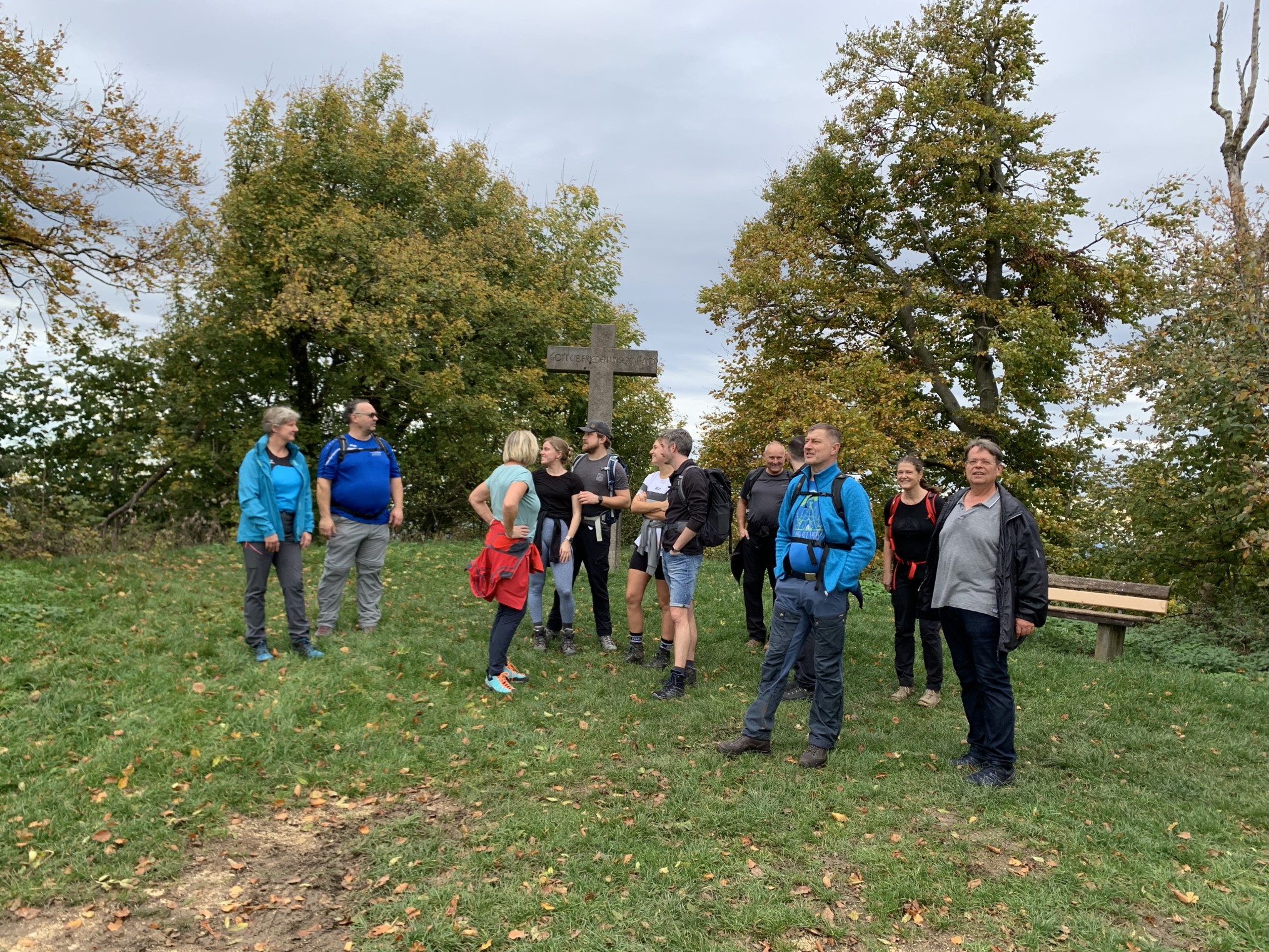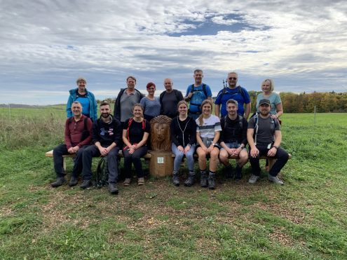 Nach längerer Zeit ist es unserem Wanderwart gelungen endlich mal wieder eine Wanderung zu organisieren bei der zahlreiche Teilnehmer zugesagt haben. Es ging nach Donzdorf von wo wir den Löwenpfad „Messelberg-Tour“ vom Wanderparkplatz an der Steige mit 14 gut gelaunten Teilnehmern starteten.