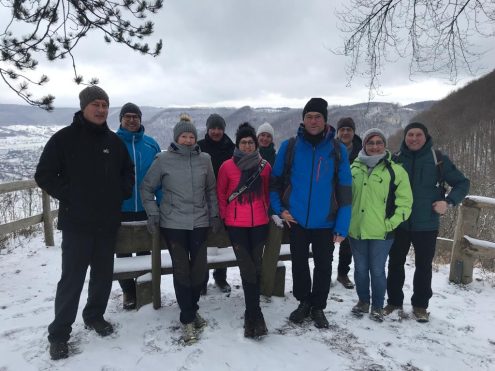 Los ging es vom Parkplatz beim Otto-Hofmeister-Haus bis zum Wanderweg HW1 bei der Ziegelhütte am Randecker Maar. Diesen erwanderten wir am Trauf entlang mit vielen Aussichtspunkten ins Neidlinger Tal bis zum „Bahnhöfle“.